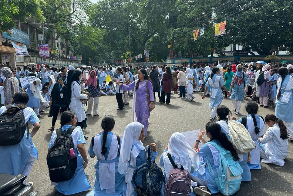 মঙ্গলবার দুপুরের দিকে বেইলি রোডে সিদ্ধেশ্বরী গার্লস কলেজের সামনে সড়ক অবরোধ করে নানা স্লোগান দিতে থাকেন শিক্ষার্থীরা।